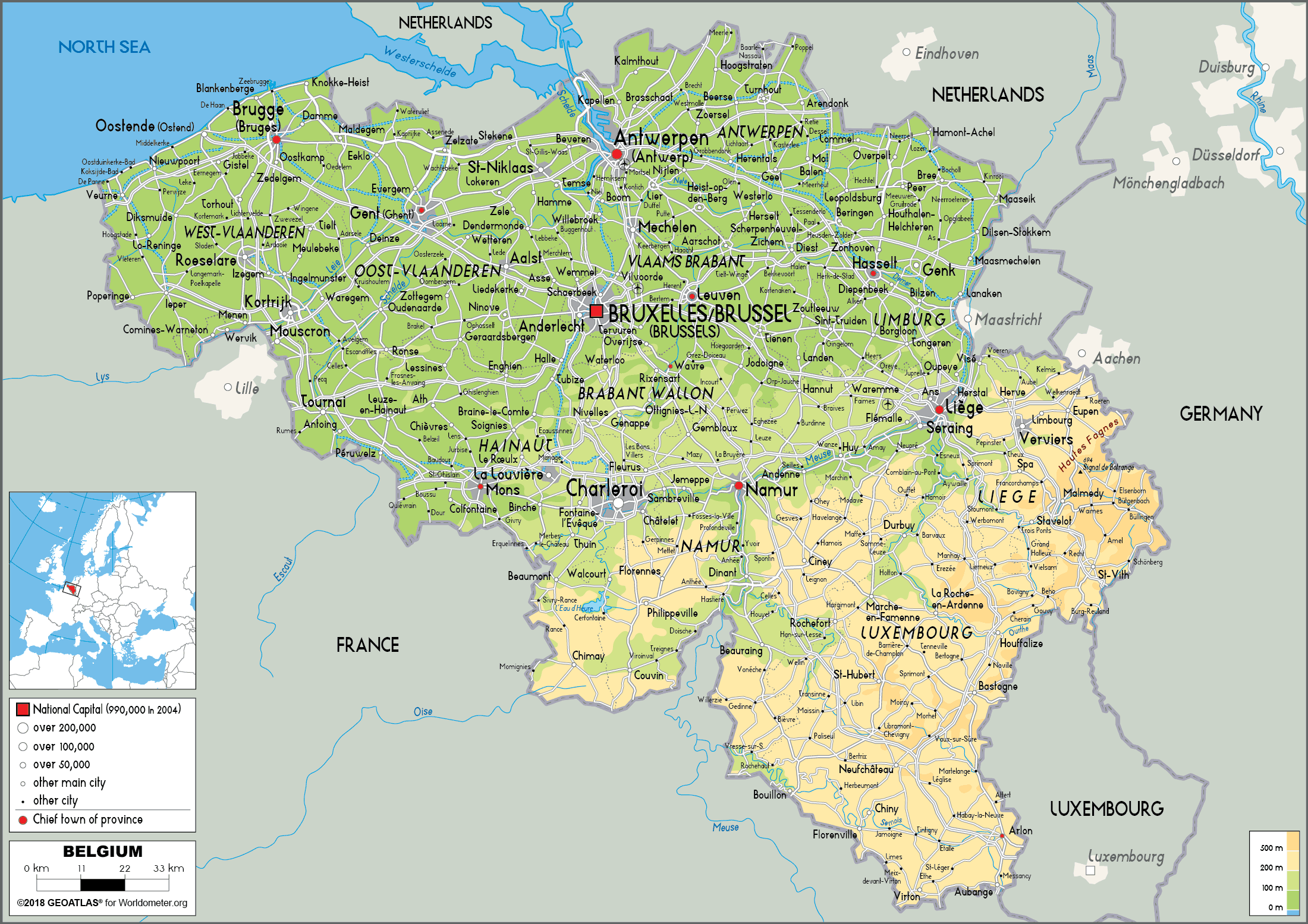 Belgium Physical Map