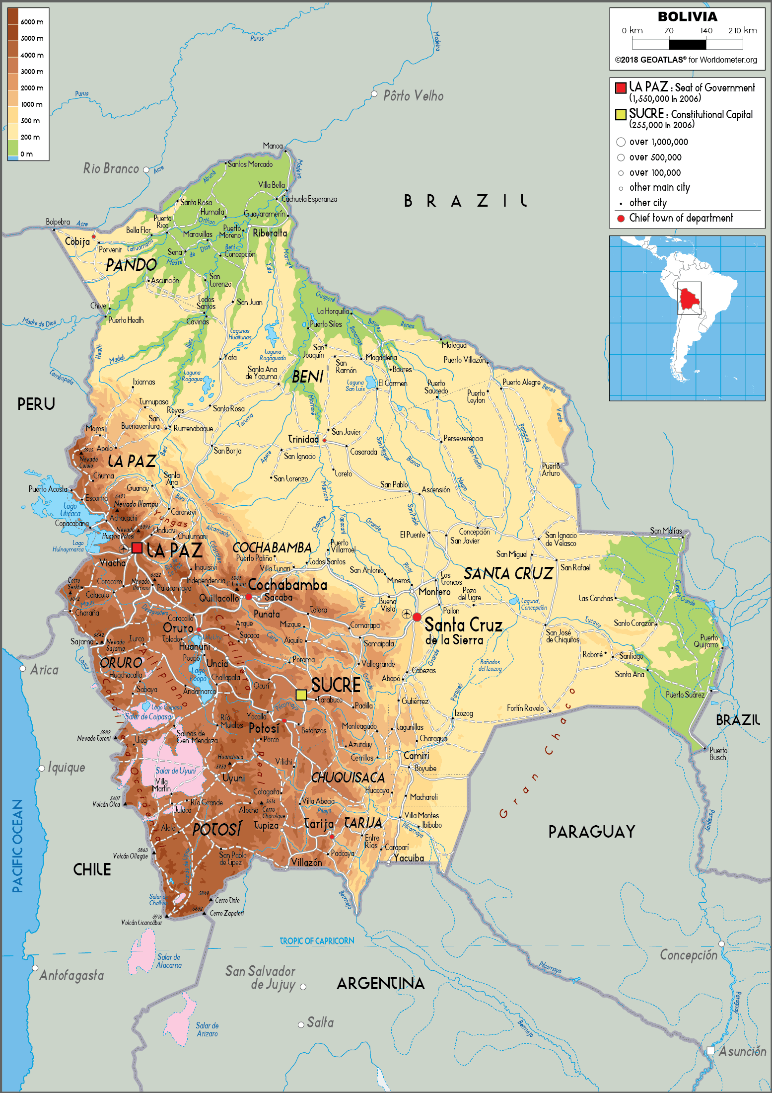 Bolivia Physical Map