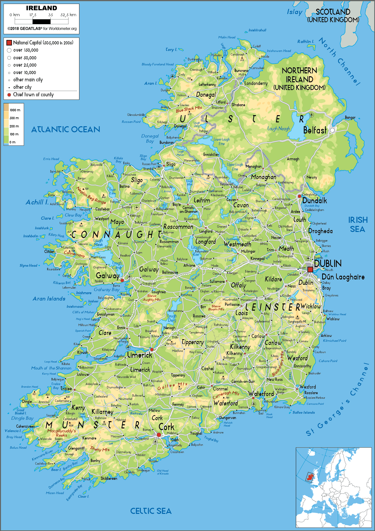 Ireland Physical Map
