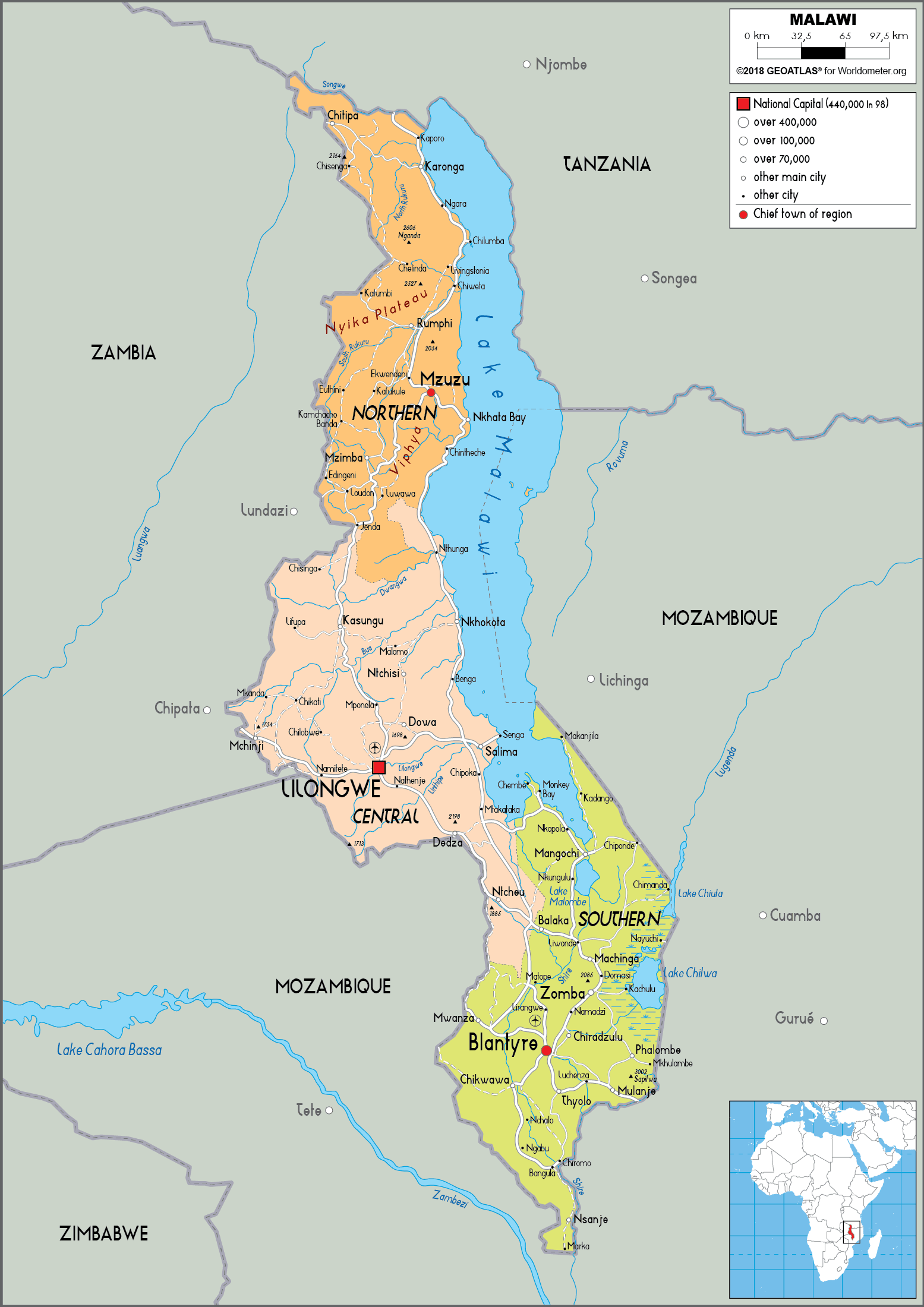 Malawi Political Map