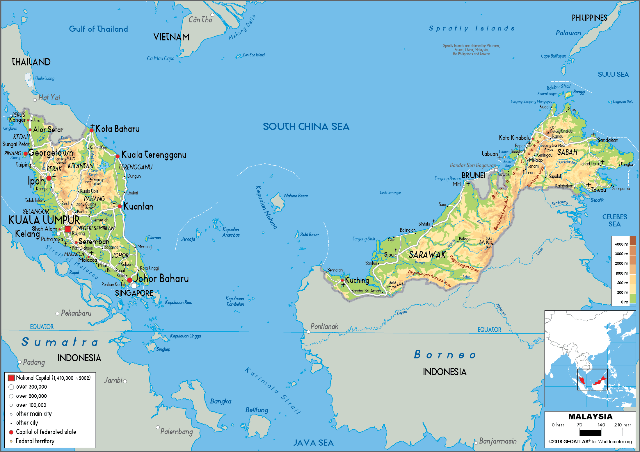 Malaysia Physical Map