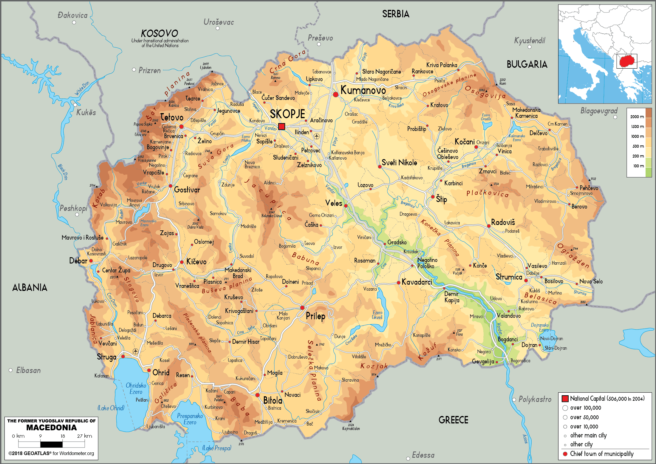 North Macedonia Physical Map