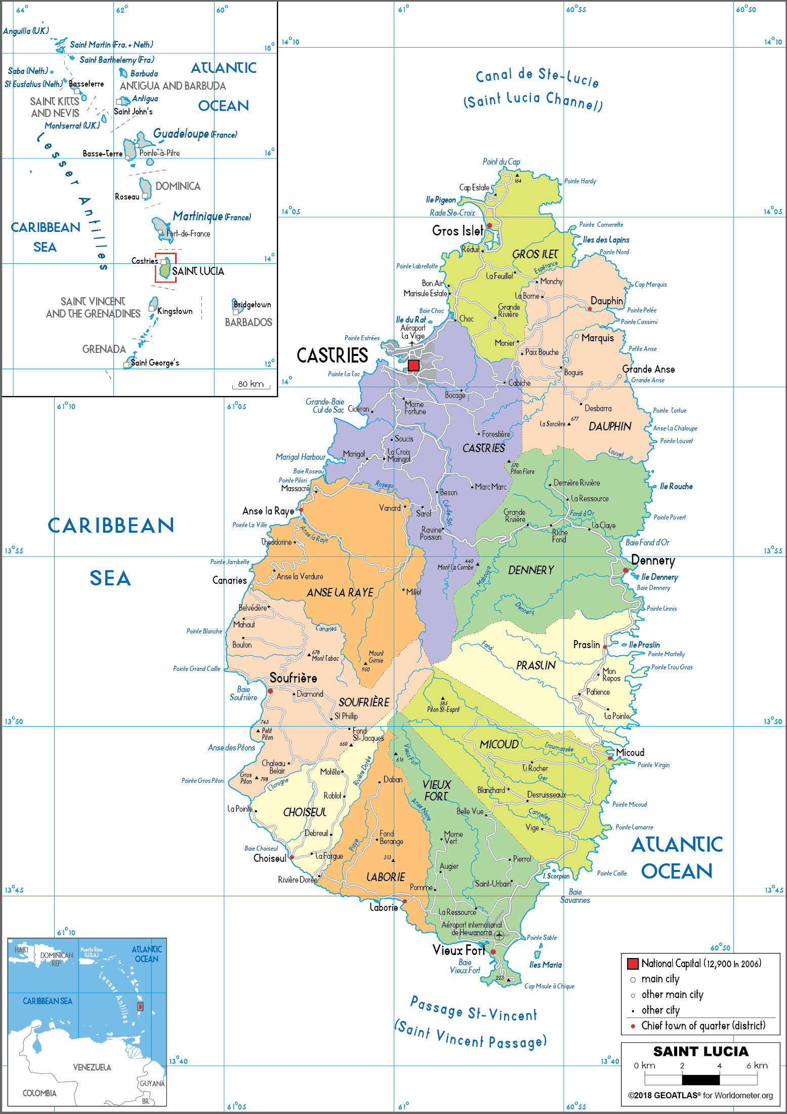 Saint Lucia Political Map